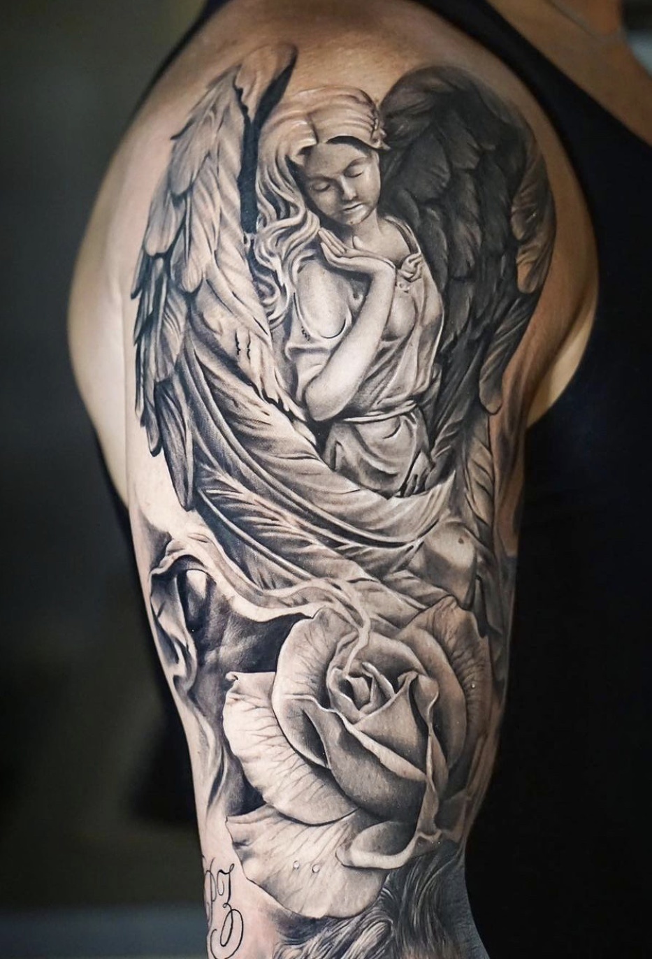 大臂天使纹身大臂天使黑灰写实_纹身吧社区 - 纹身大咖