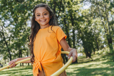 可爱的小孩子在田野里看着相机
