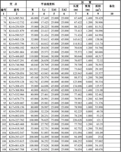 一览表(平曲线加宽)