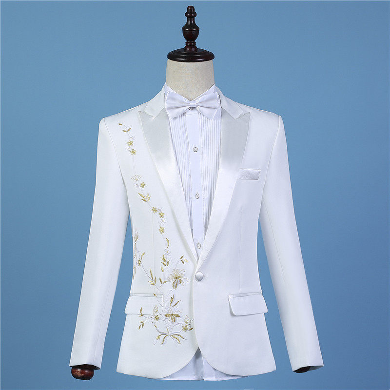 新郎礼服2020套装刺绣西服修身白色韩版岁主持人演出—西服/小西装