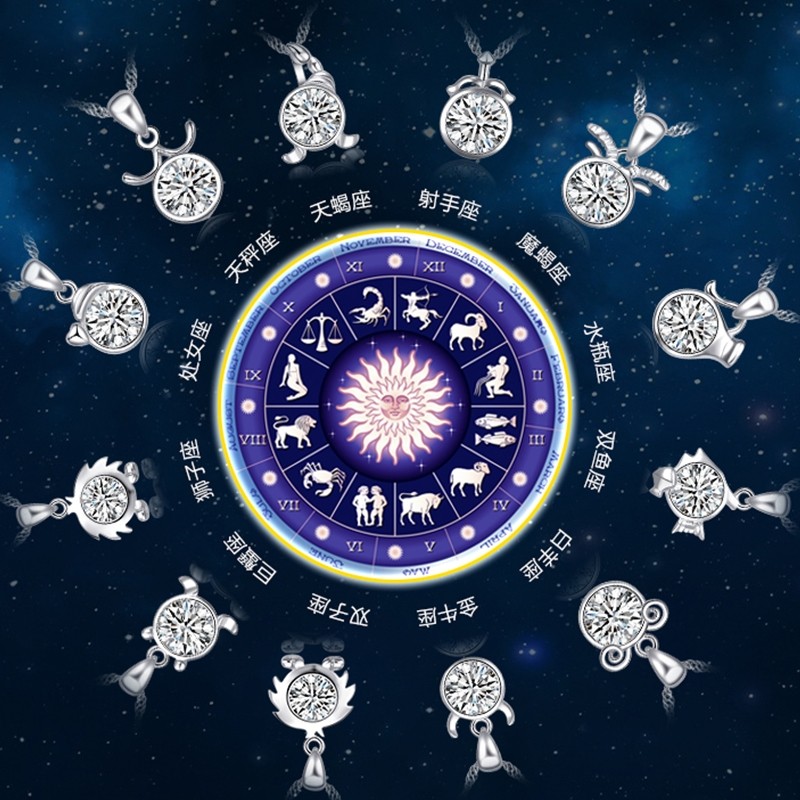 十二星座钻石项链抛光锆石银宝贝粉丝专属项链
