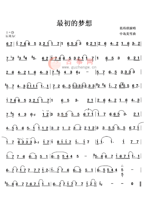【歌曲简谱】 最初的梦想 (范玮琪)