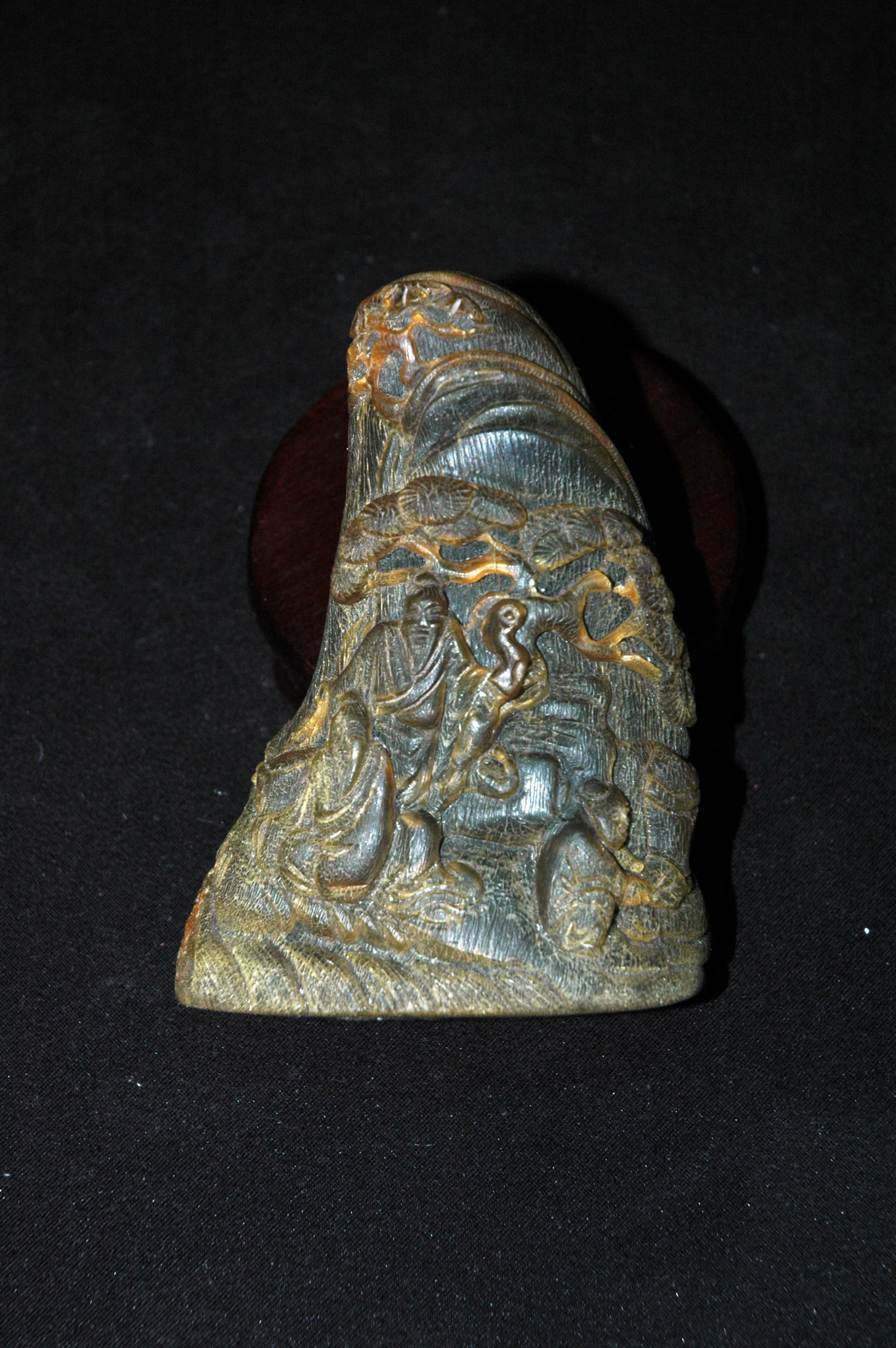 明代 苏门答腊犀角 雕秋山居士图摆件