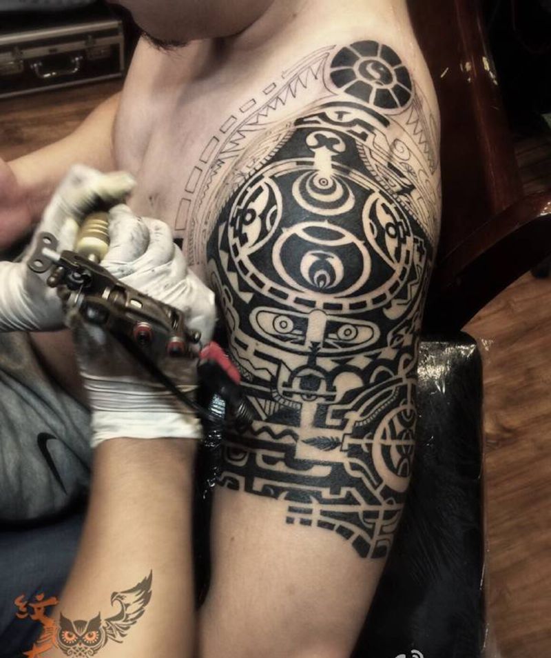 强森图腾纹身图片成品肩部欧美图腾纹身图案