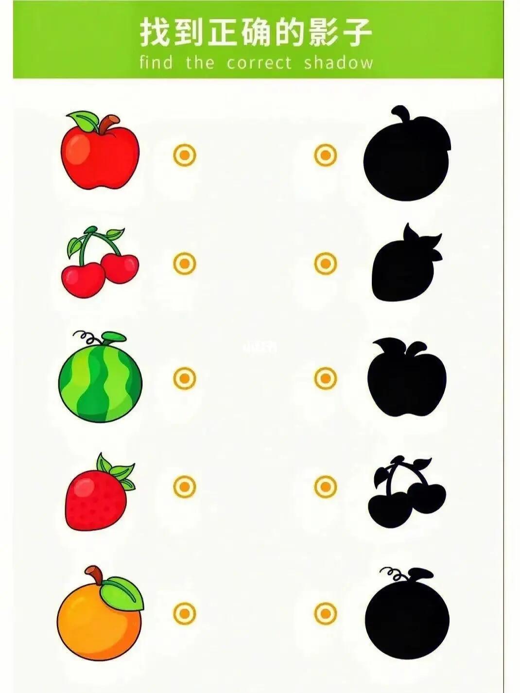 找到正确的影子游戏给孩子一套卡通水果和蔬菜