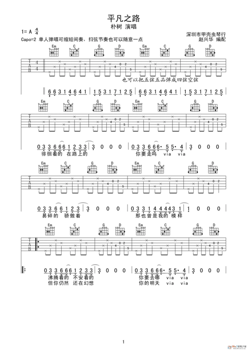 朴树平凡之路吉他谱g调高清版