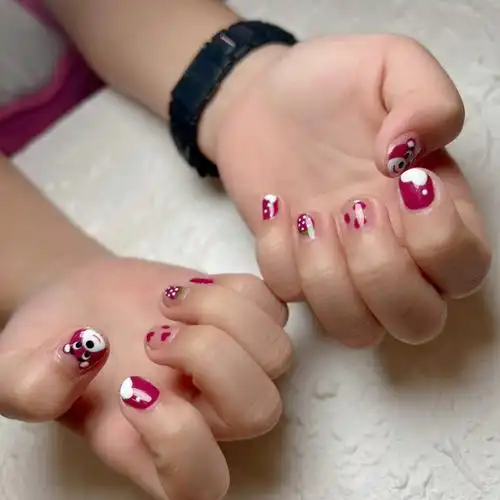 奶呼呼美甲97治愈草莓甲95童趣手绘甲95