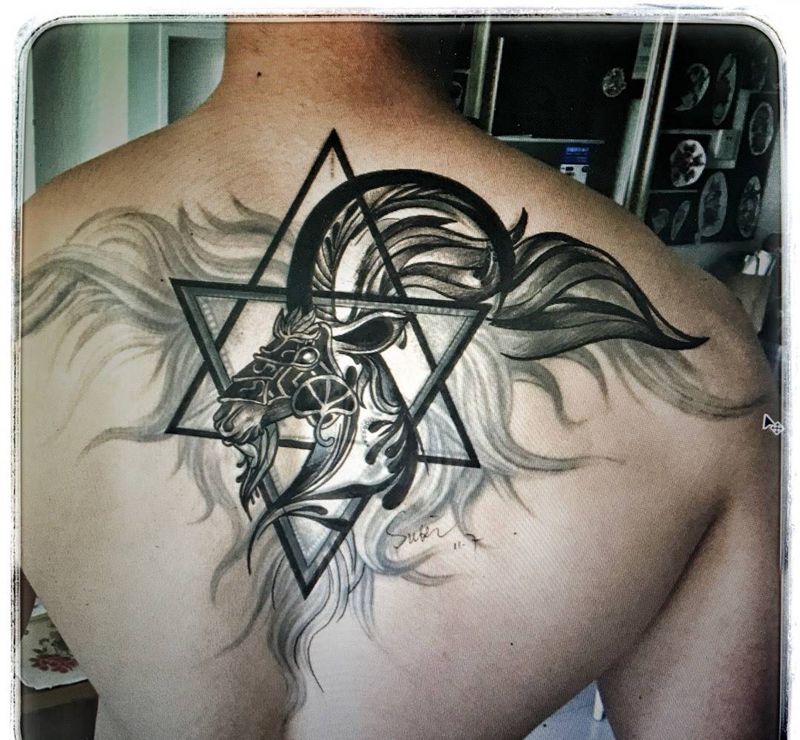 指南针纹身图片_成品背部欧美几何图腾纹身图案