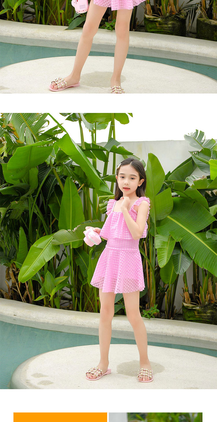 2019新款儿童泳衣女孩学生粉色蝴蝶结裙式清爽温泉连体泳装