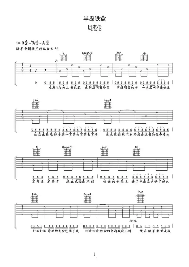 半岛铁盒(吉他谱)1