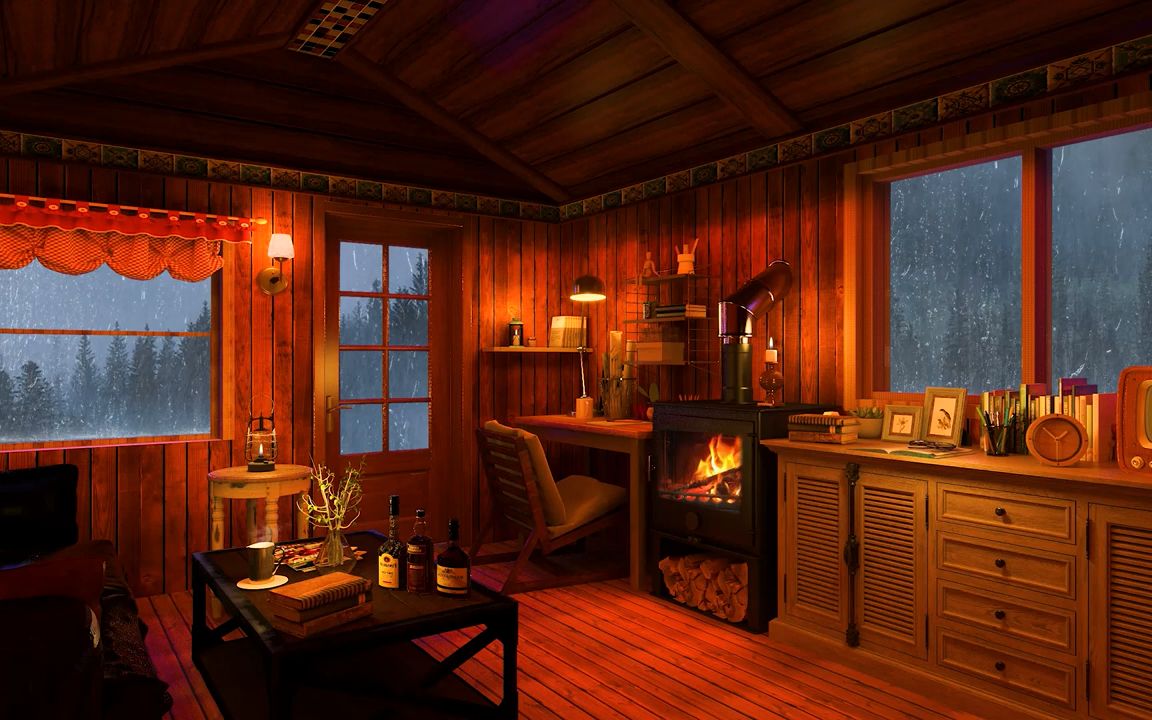 中世纪复古小木屋氛围丨在舒适的小屋听雨入睡,放松雨声白噪音