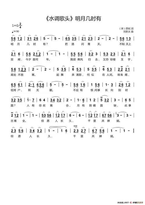 水调歌头 明月几时有 歌谱简谱网