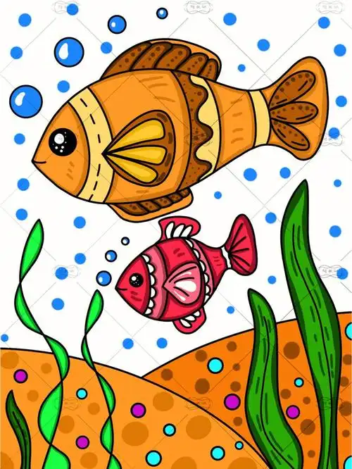 海底美丽鱼儿童画内附线稿海底世界