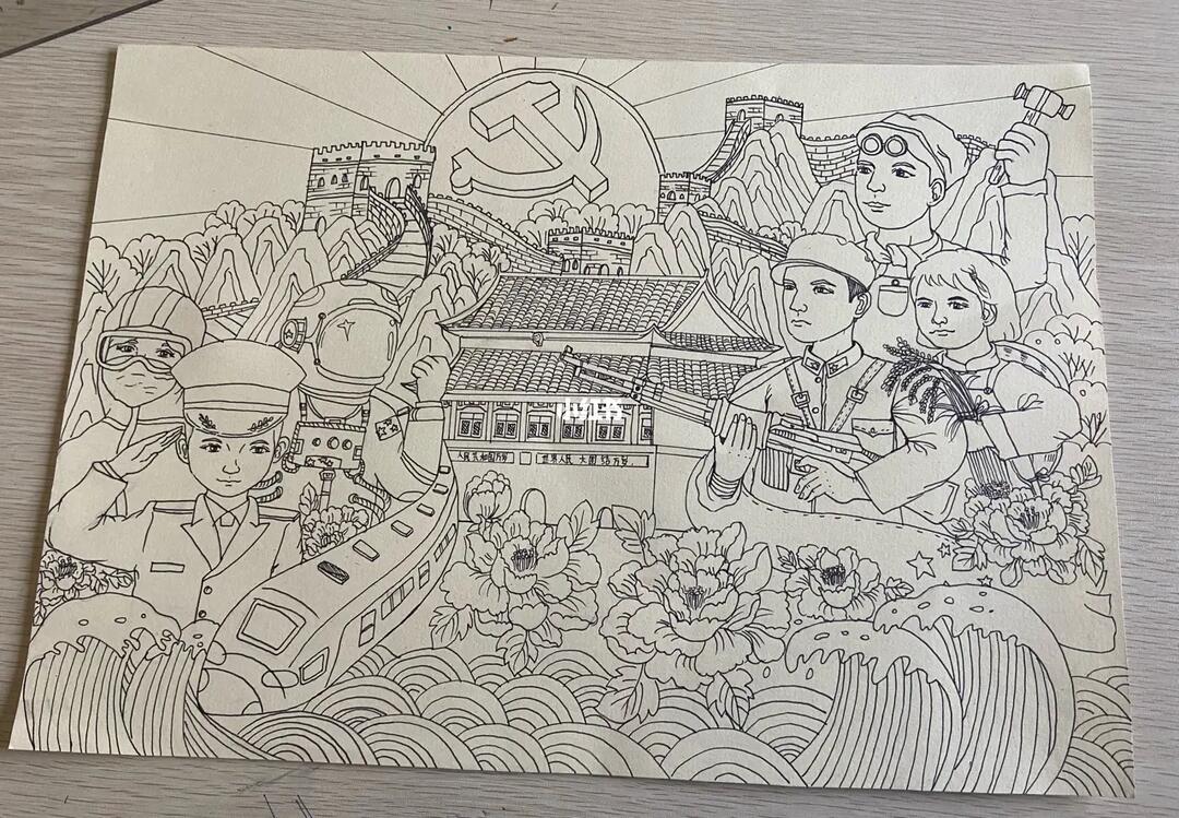 建党一百周年绘画黑白线条画临摹_绘画_临摹_线条画_古文化街自由行