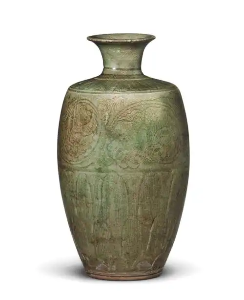 明永乐 龙泉窑刻缠枝花卉纹梅瓶明洪武-永乐 龙泉窑剔刻缠枝牡丹纹