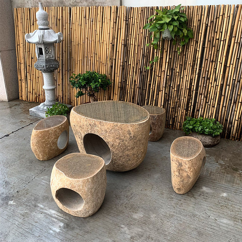 良然 石桌石凳庭院花园天然茶桌公园石头桌子室外茶台阳台桌凳户外