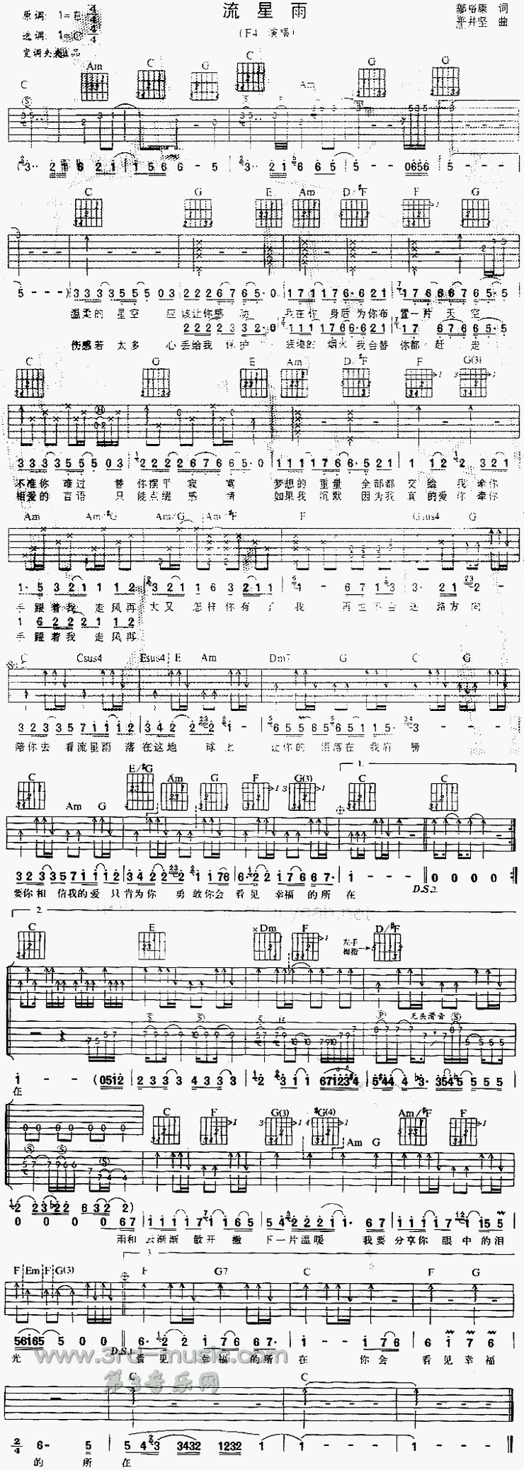 流星雨(《流星花园》主题曲)_歌谱简谱_哆来咪123曲谱网