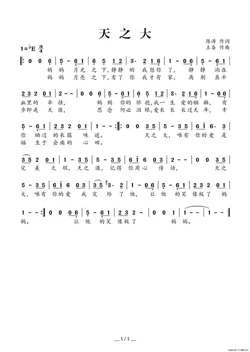 天之大_歌谱简谱_哆来咪123曲谱网