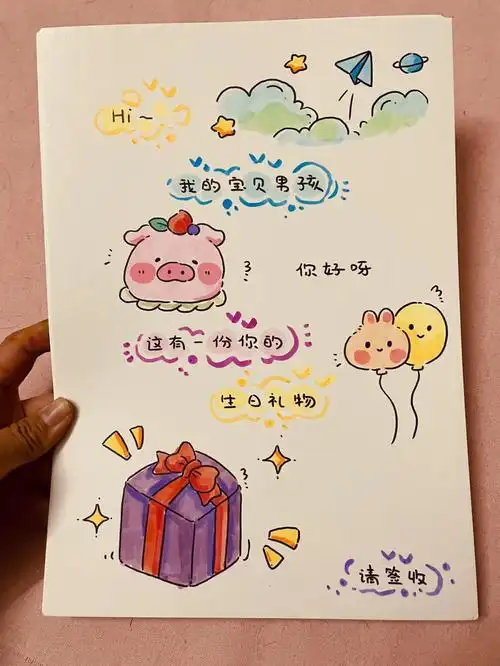 感动男朋友的生日礼物猪猪手绘贺卡礼物