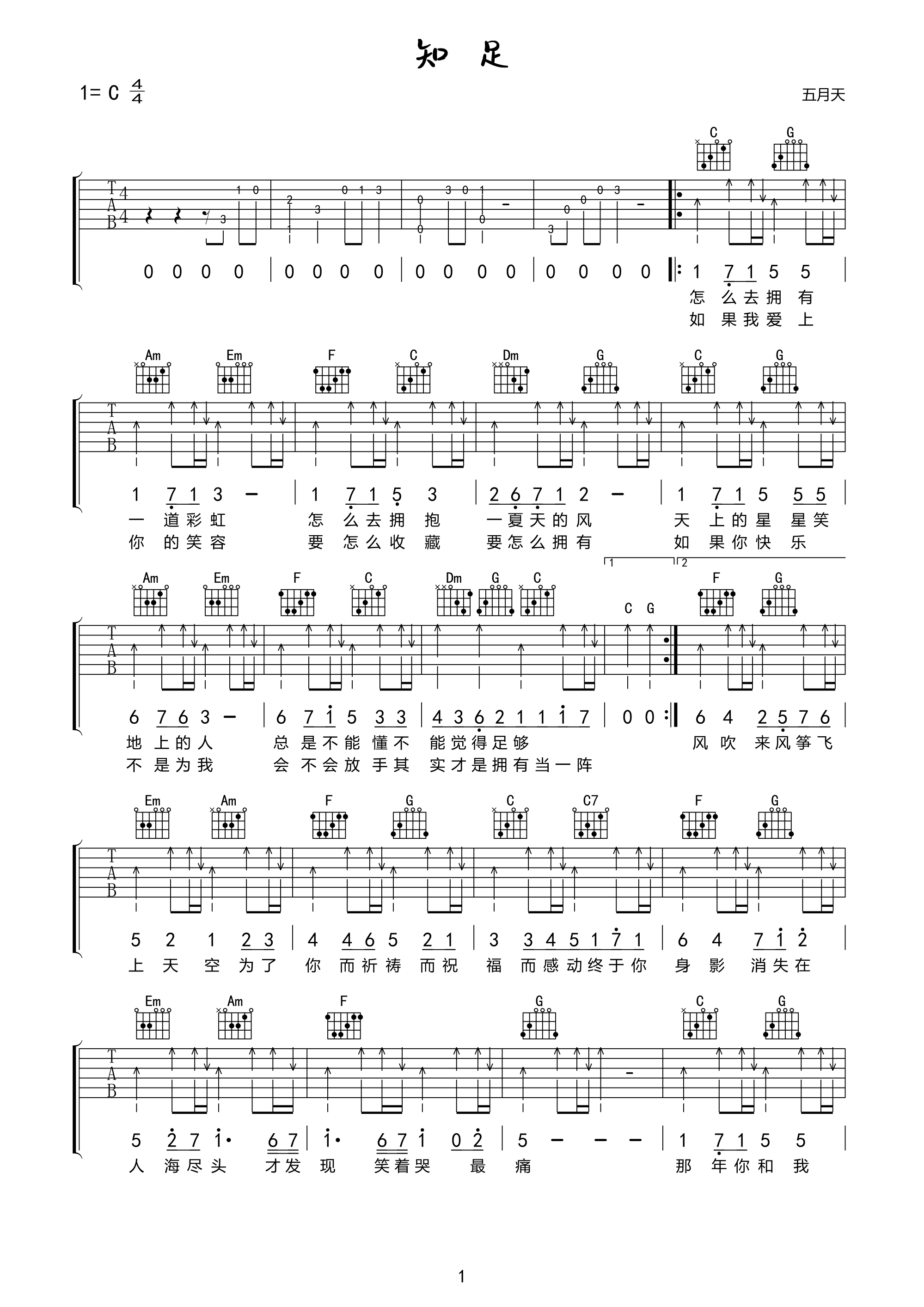 五月天 知足 吉他谱 无限延音编配c调六线pdf谱吉他谱-虫虫吉他谱免费