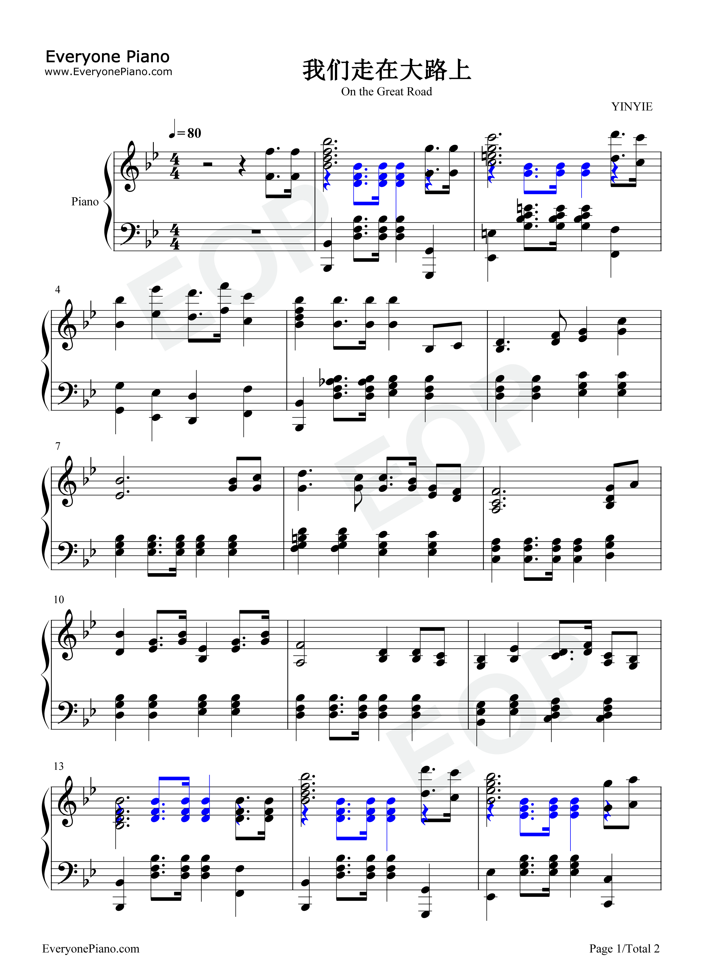 我们走在大路上五线谱预览1-钢琴谱文件(五线谱,双手简谱,数字谱,midi