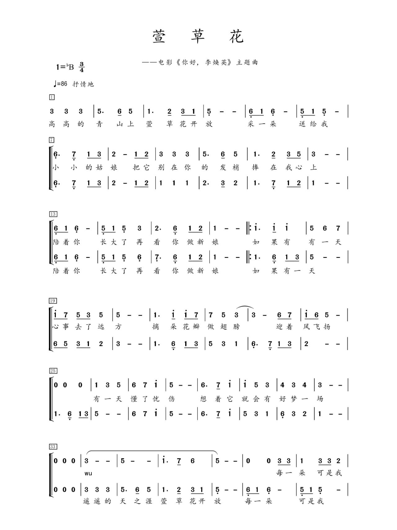 《萱草花》二声部 合唱简谱 简单版 这个比较简单,是早些时候给一个