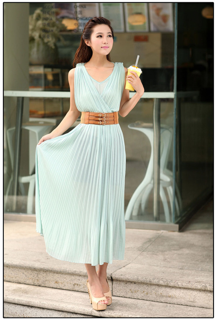 女装夏季吊带裙 荷叶边沙滩裙大下摆裙子 雪纺修身打底连衣裙