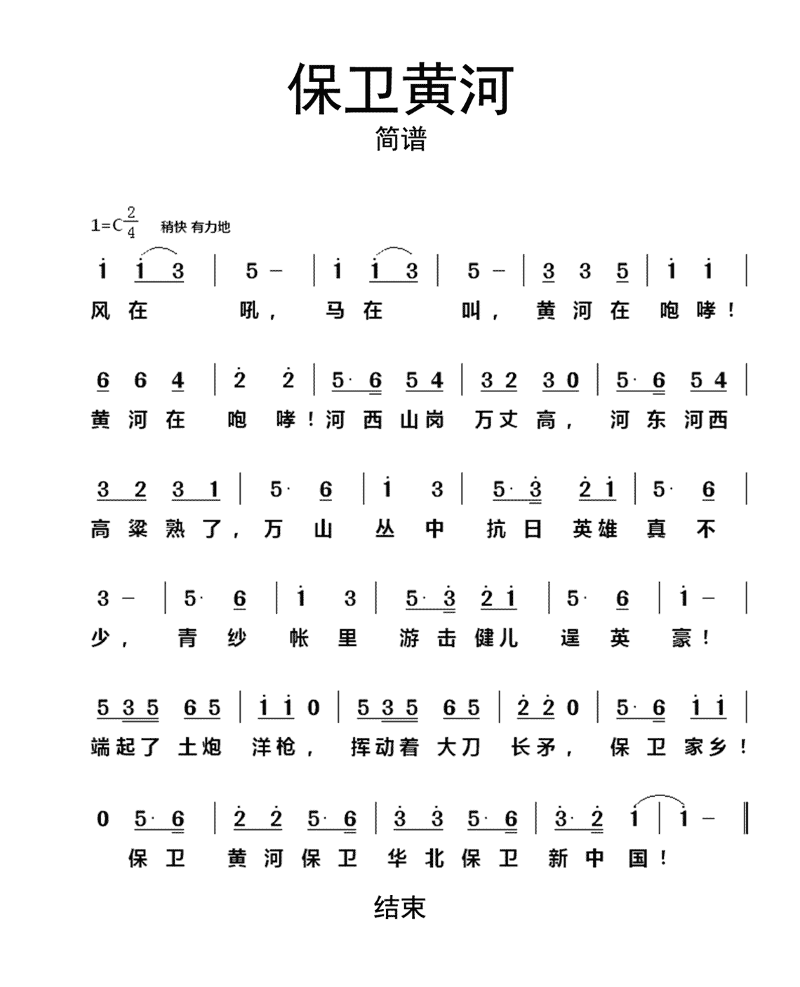 保卫黄河歌曲类简谱