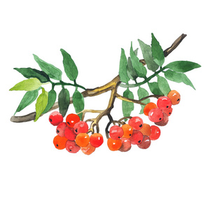 手绘水彩插画素材 水果植物系列 红色浆果 一串