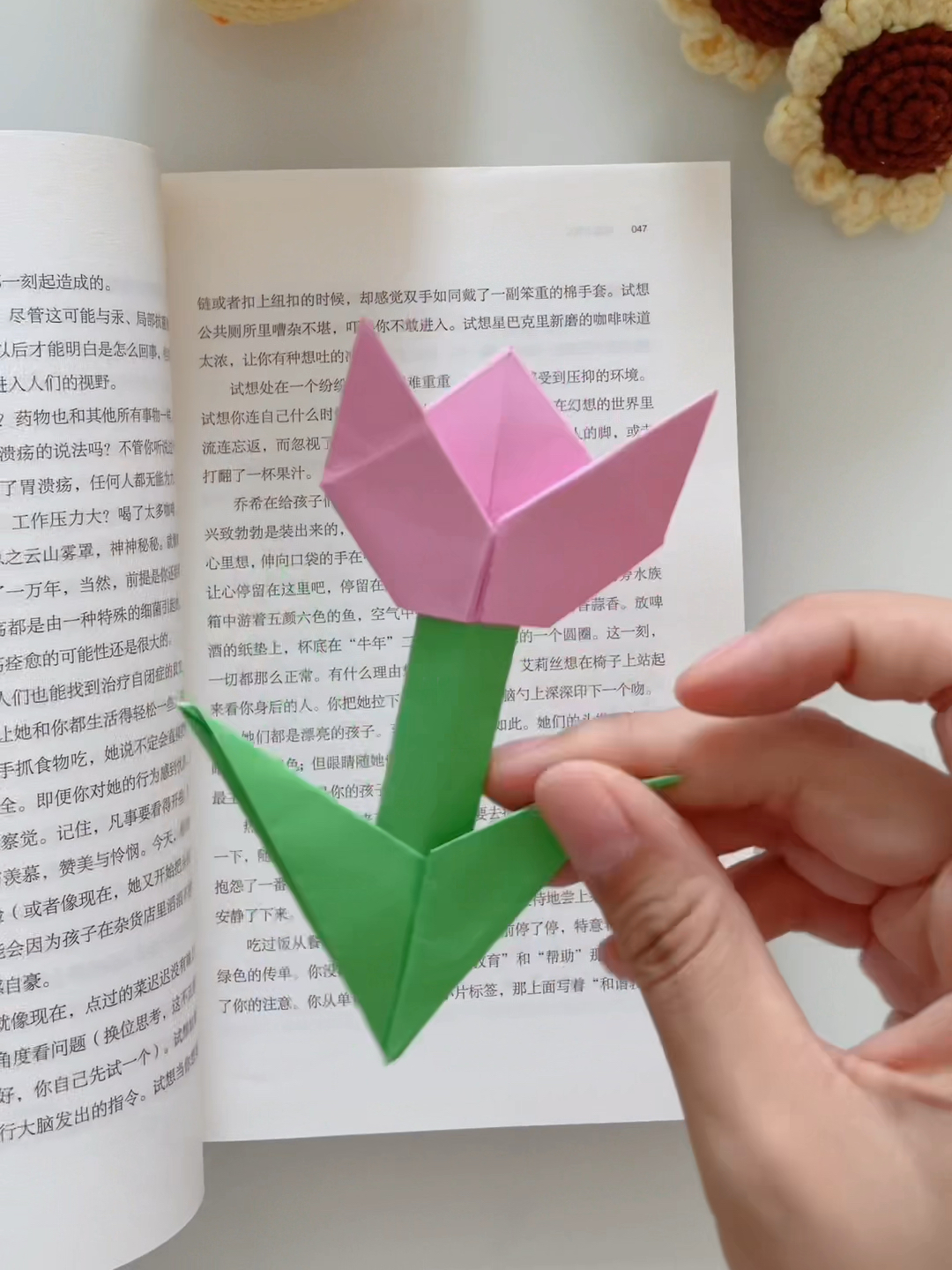 手工折纸~清新淡雅的郁金香书签