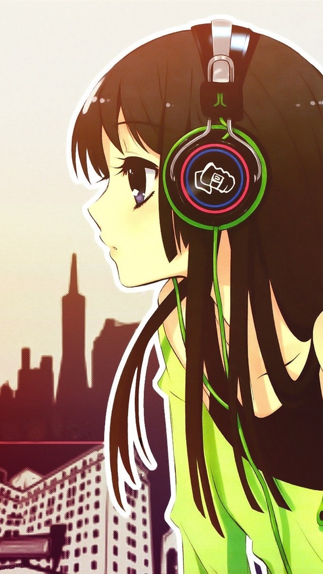 女孩听音乐,耳机,城市 640x1136 iphone 5/5s/5c/se 壁纸,图片,背景
