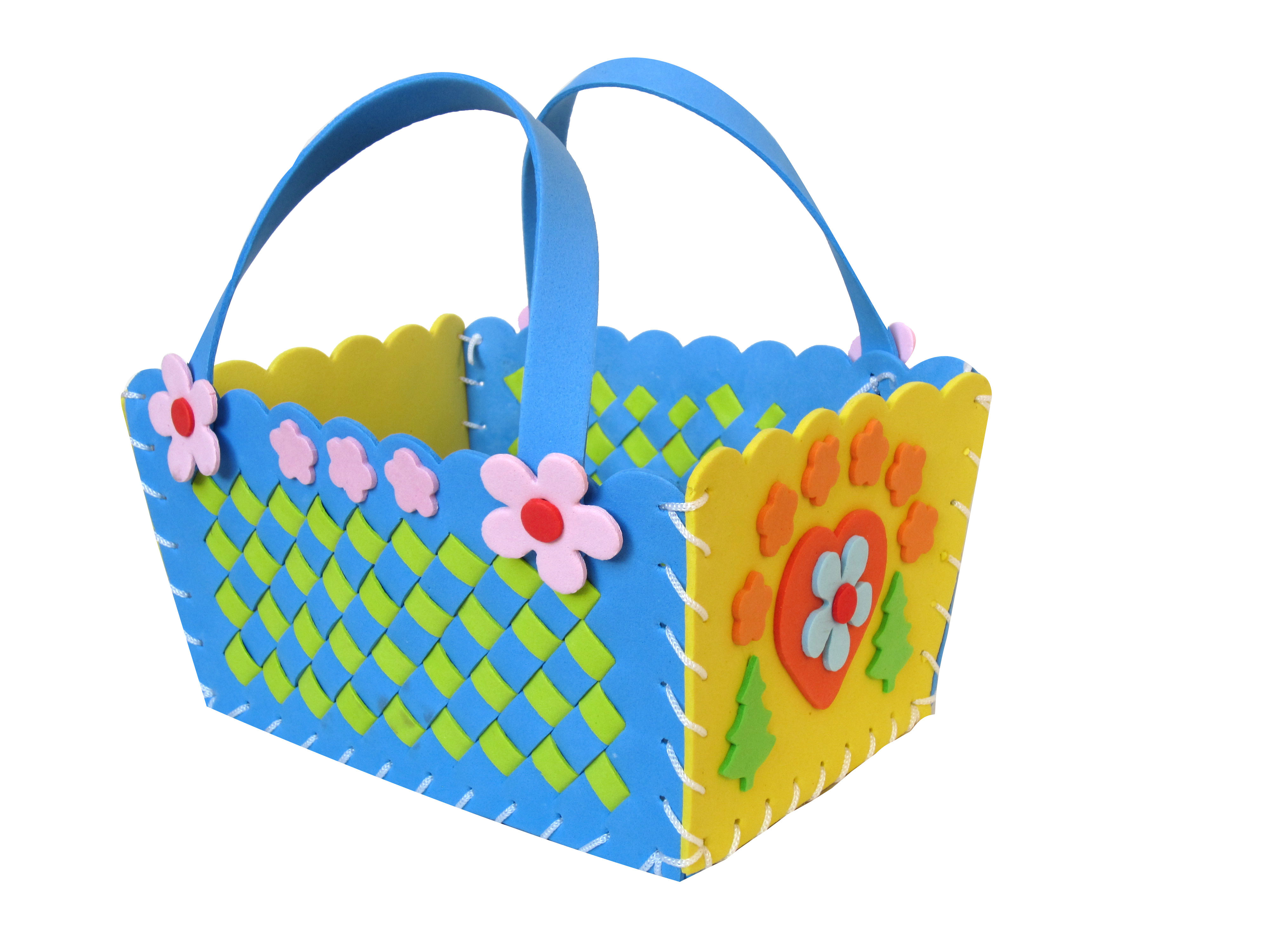 儿童diy手工制作 新款eva编织蓝 花篮 幼儿园手工材料包手工花篮