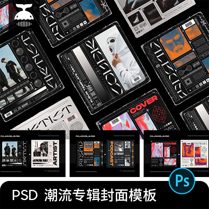 酸性潮流嘻哈hip hop音乐cd专辑唱片封面海报排版psd设计素材模板