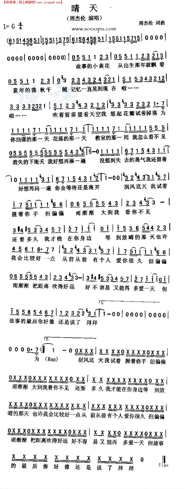 简谱:《晴天》-周杰伦