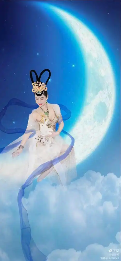 嫦娥奔月仙女神仙图古代美女画像嫦娥玉兔照广寒清兴仙女图贴画6