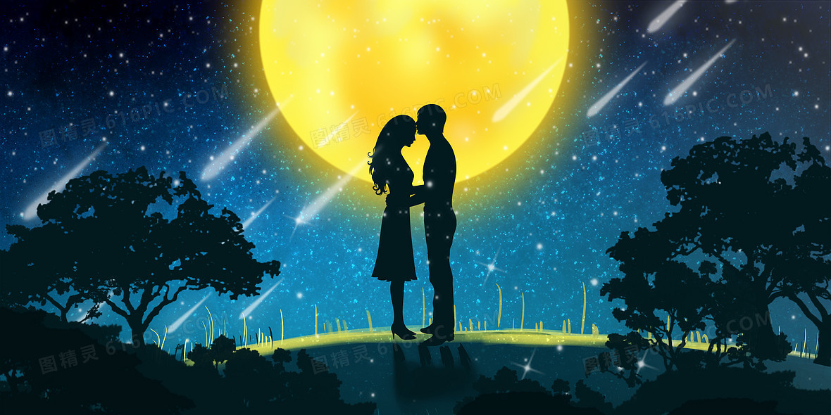 唯美月光下情侣剪影背景