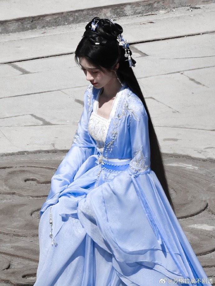 鞠婧祎在逃蓝精灵##鞠婧祎湖水蓝仙女裙##鞠婧祎姜黎非