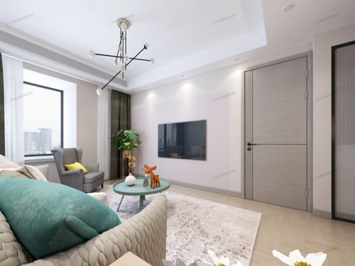 居室,装修风格为现代简约风,然后在颜色的搭配上选择了比较素雅的色调