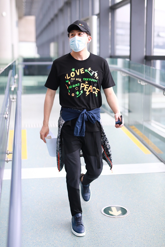 孙艺洲走的是一种型男的路线,此次穿得是一身西装,黑色的衬衫内戴着一