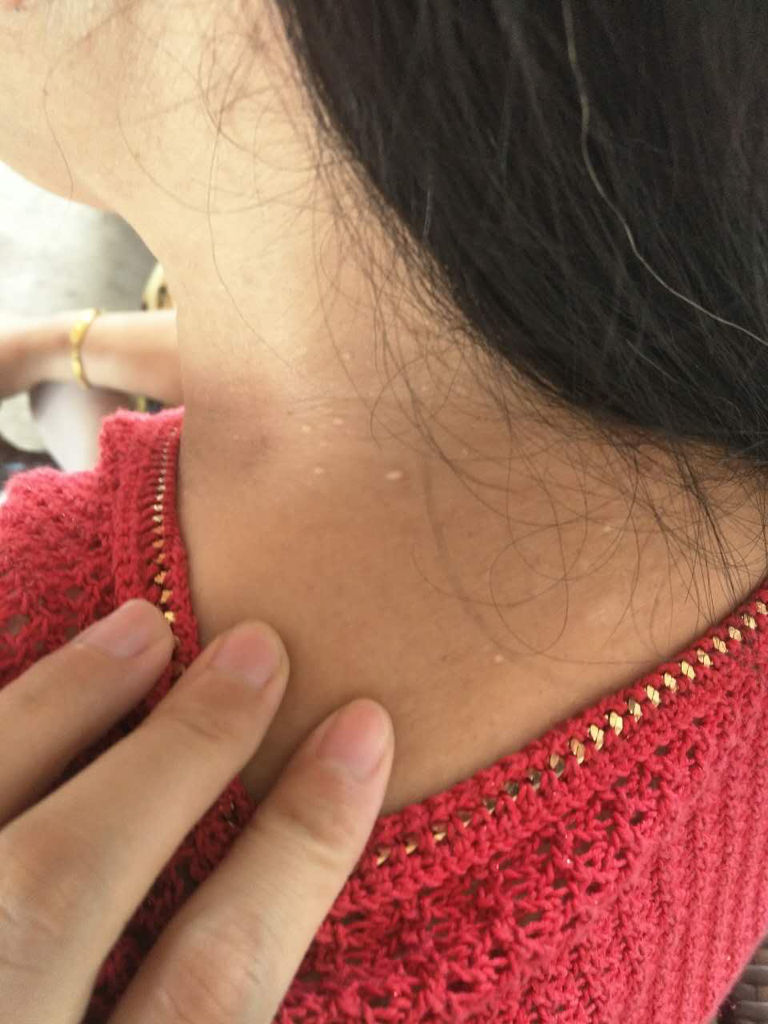 脖子上突然起了很多白色头的疙瘩,像粉刺但不是粉刺,不痒,但是碰到会
