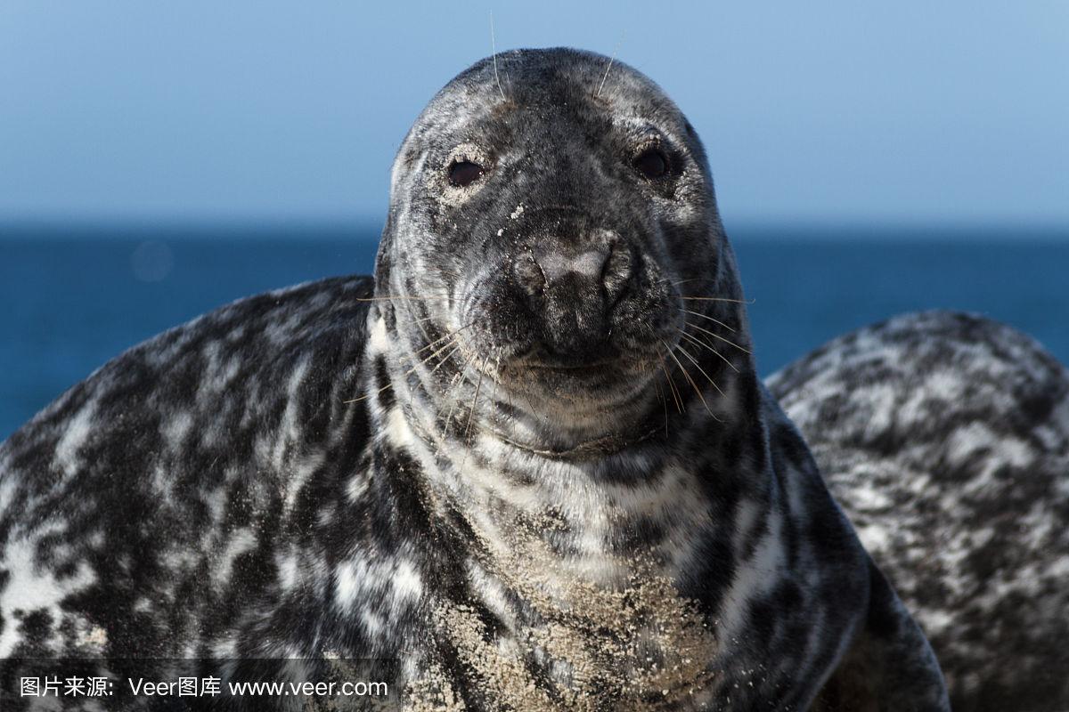 黑戈兰沙丘上的海豹对着摄像机摆姿势