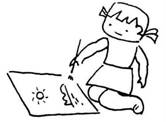 画画的小女孩简笔画填色图片 人物-第1张