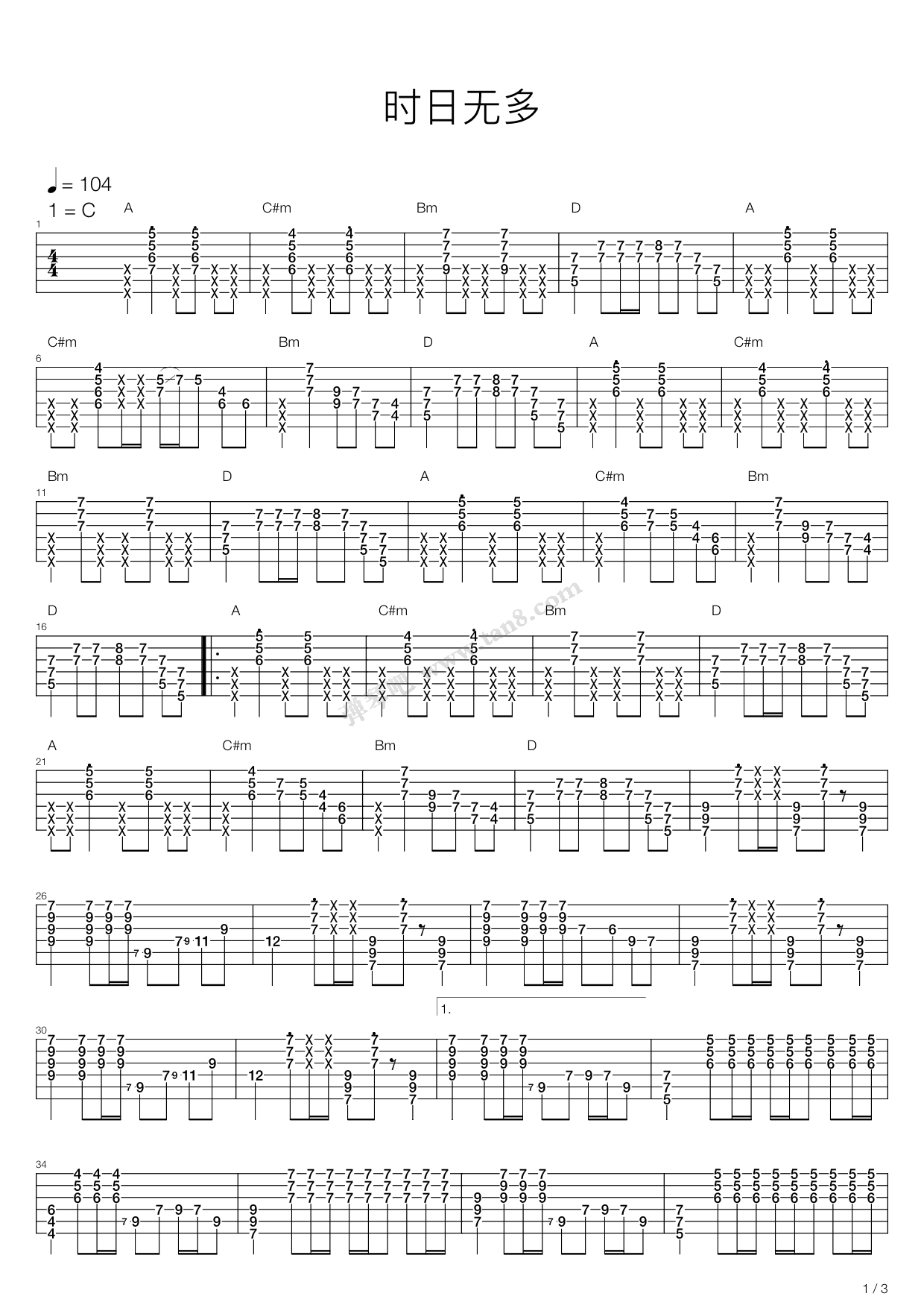 《时日无多》,beyond(六线谱 吉他谱吉他谱 第1页
