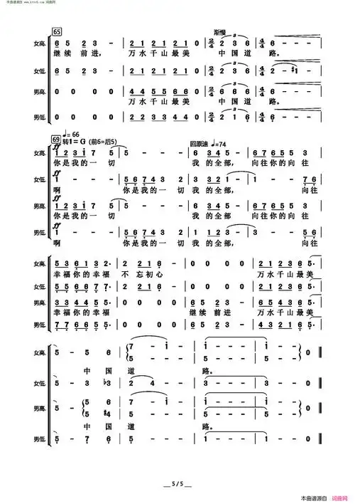 不忘初心混声合唱简谱