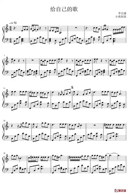 给自己的歌-弹唱谱,给自己的歌-弹唱谱钢琴谱,给自己的歌-弹唱谱g调