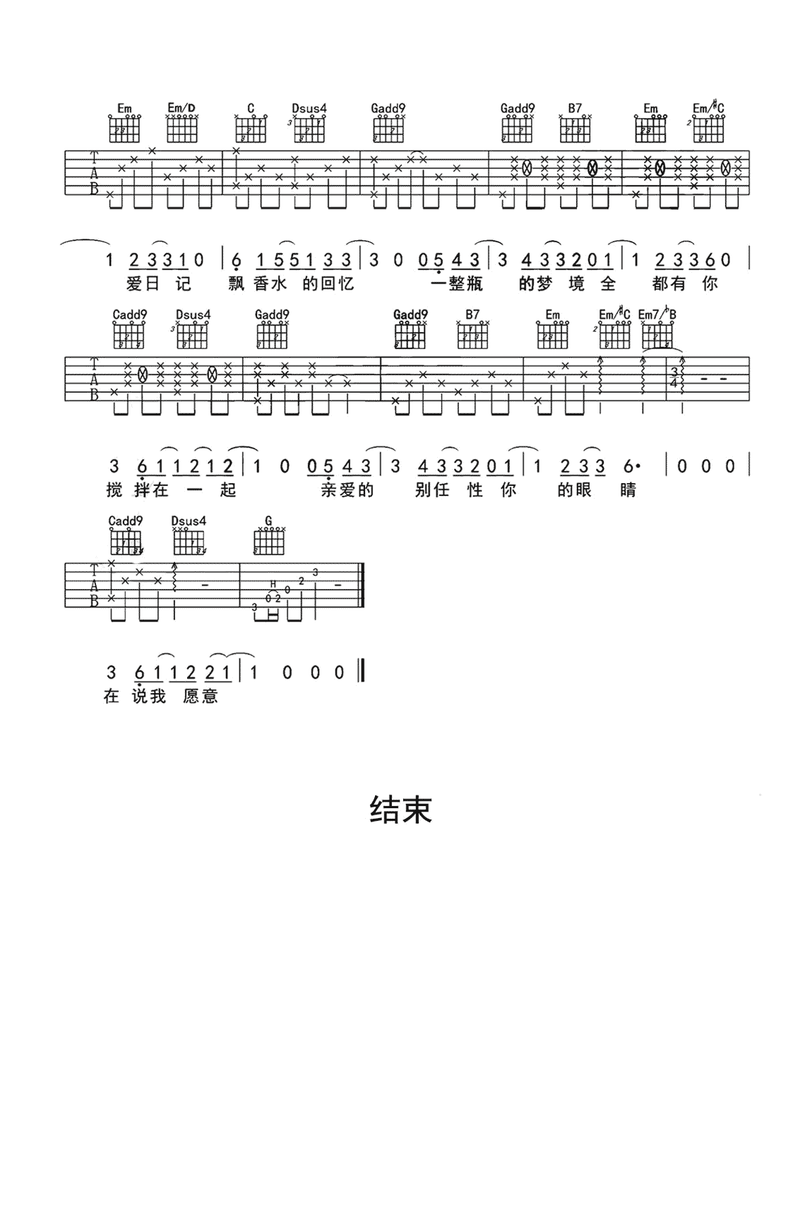 周杰伦《告白气球》吉他谱_c调指法和弦_高清六线谱_蓝莓吉他教学版.