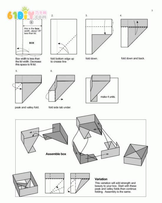带盖子的收纳盒折法教程手工叠正方形盒子