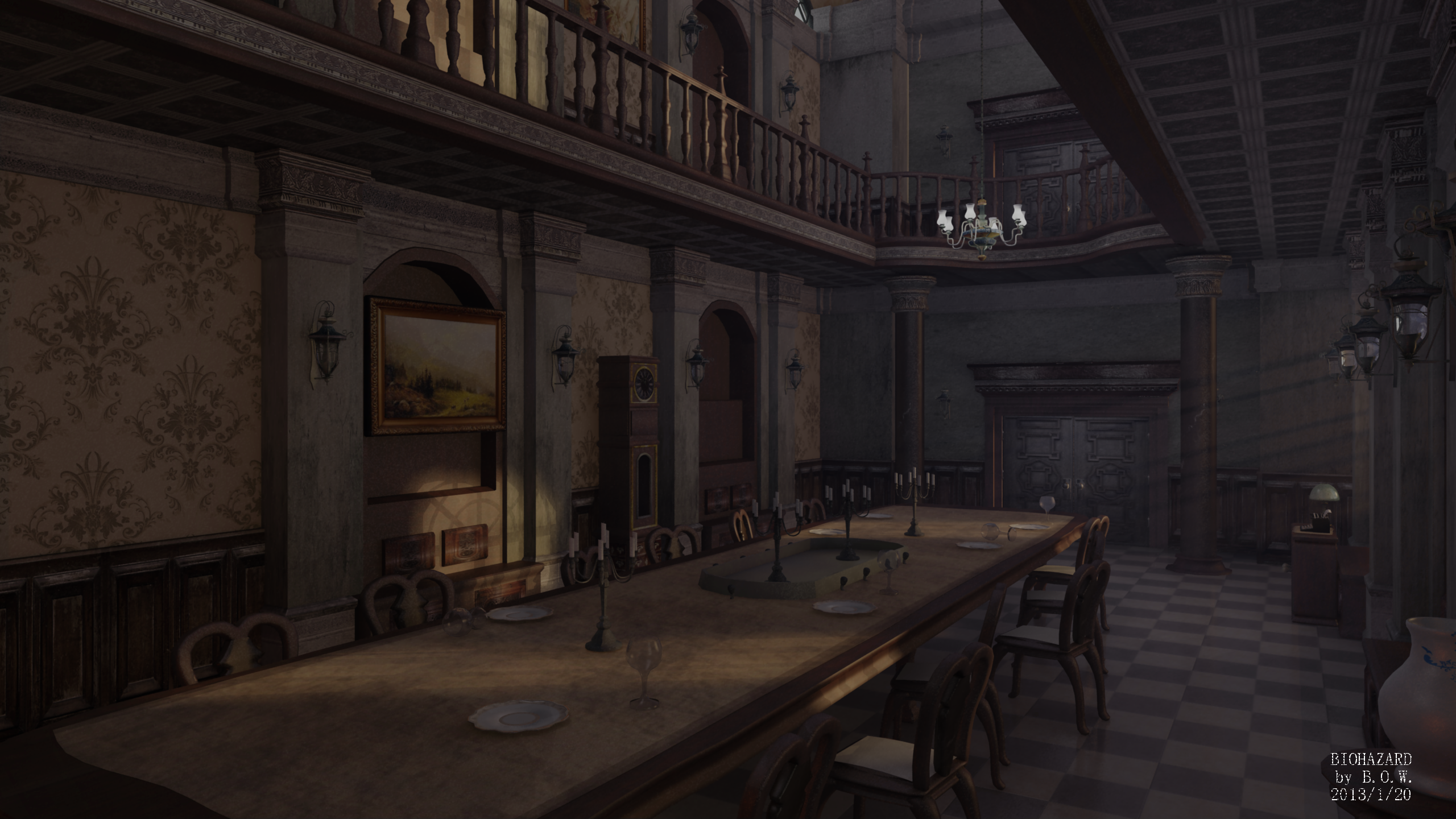 生化危机1的洋馆餐厅部分,一改黑夜的恐怖.