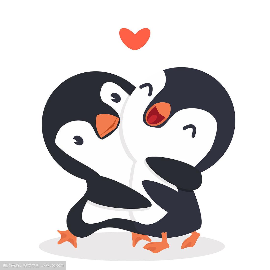 可爱的企鹅,幸福的情侣拥抱