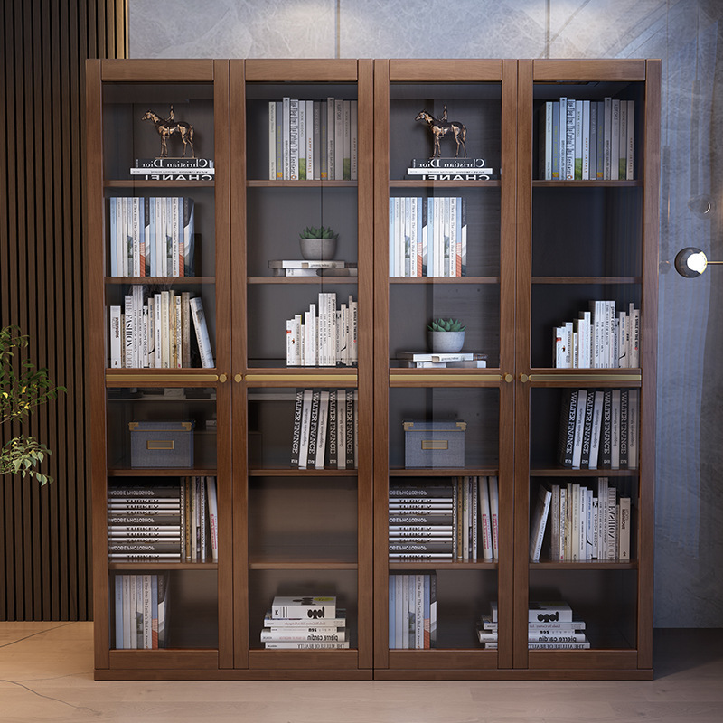 新中式书柜全实木带玻璃门现代轻奢客厅自由组合柜书房书橱置物柜